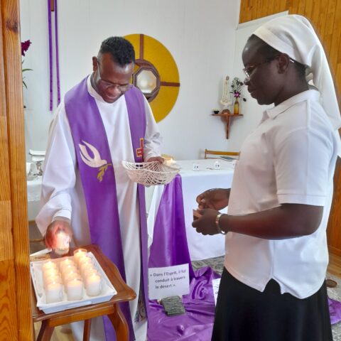 Samedi 30 août, Sr Irène et Sr Yvette ont prononcé leurs vœux perpétuels et ont reçu leur envoi en mission. Soeur Irène est envoyée à la communauté de Kpalimé dans la mission de Direction du Centre de Santé Notre-Dame de la Miséricorde à Kpalimé. Soeur Yvette est envoyé dans la communauté de Sainte Clotilde La Réunion.